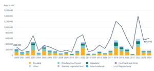 Figure 1. Annual area of drought impact (km2) from 2000-2024 (European Environment Agency (EEA) 2025).