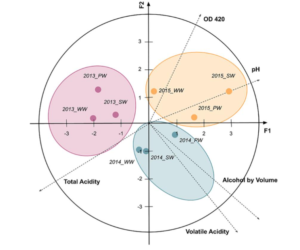 Figure 3. Analysis of physico-chemical composition of wine from 2013-2015 (Ayache, et al. 2022, adapted from Etchebarne-Marjotte, et al. 2016)